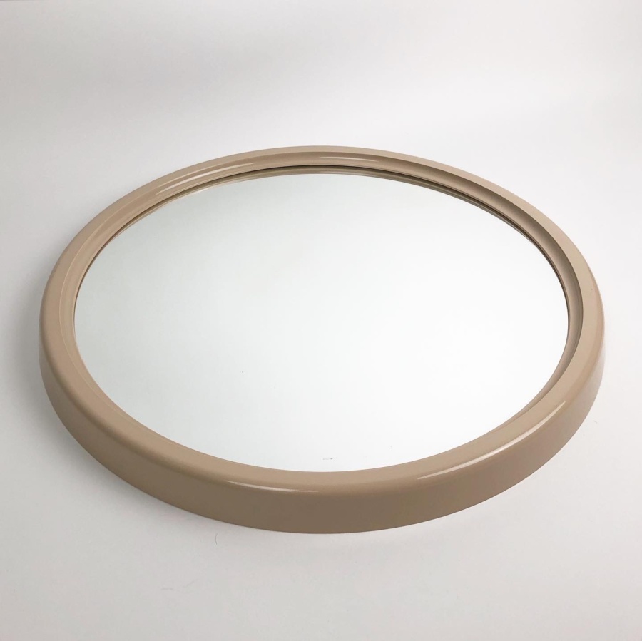 Deze vintage ronde retro spiegel van Emsa past helemaal in de Nude interieur trend.
