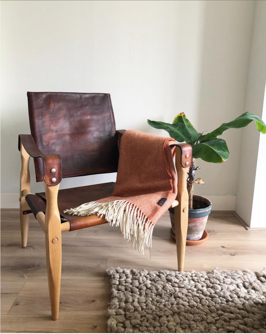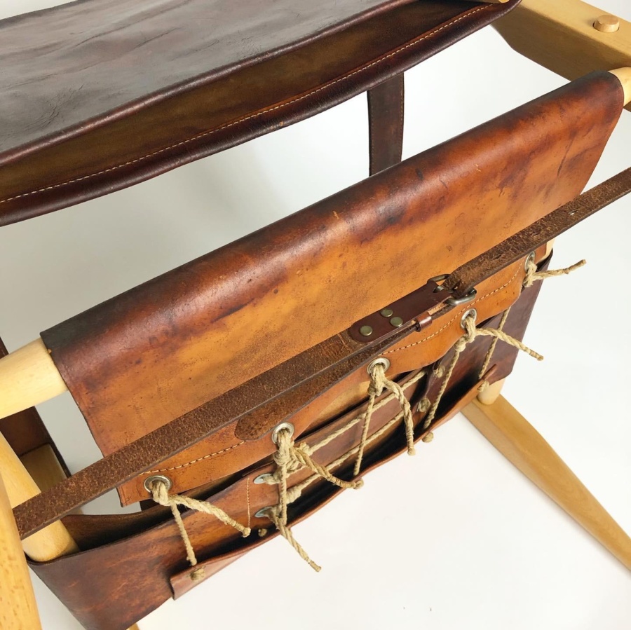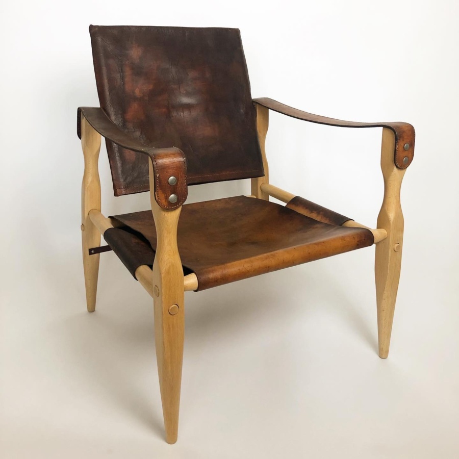 Deze safari stoel is ontworpen door Wilhelm Kienzle en in de jaren 50 geproduceerd door Wohnbedarf. Het is een van de eerste ontwerpen waarbij geen gereedschap nodig is om de stoel in elkaar te zetten. Hierdoor uitermate geschikt om compact mee te nemen op safari. Vandaar de naam Safari chair.