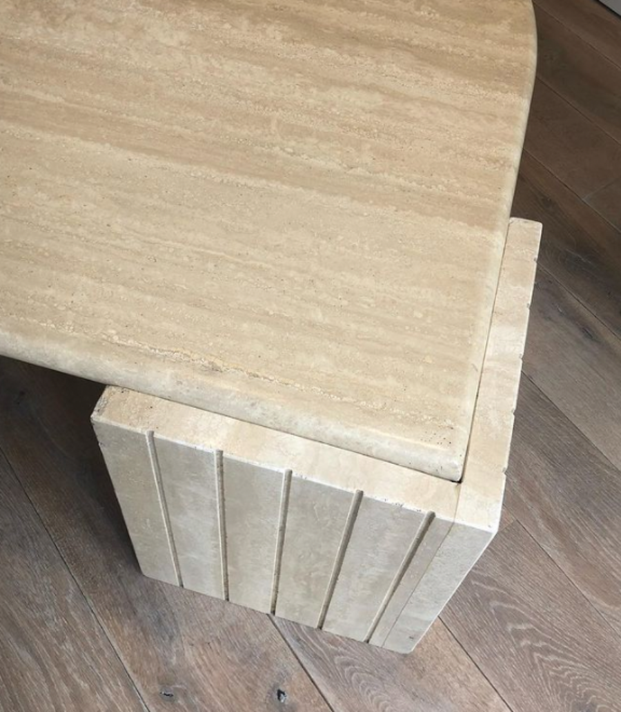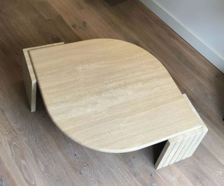 Prachtige vintage natuurstenen travertin salontafel oog-amandelvormig